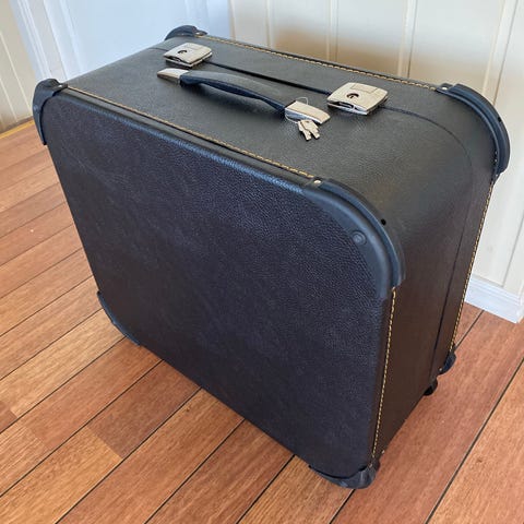 Trekkspillkoffert, "luksus" ca. 51,5 cm x 44 cm med ekstra håndtak og hjul: kr. 1.750,- (normal pris: kr. 2.550,-)
