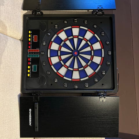 - Dartskiven måler 46 x 4,5 x 61 cm.