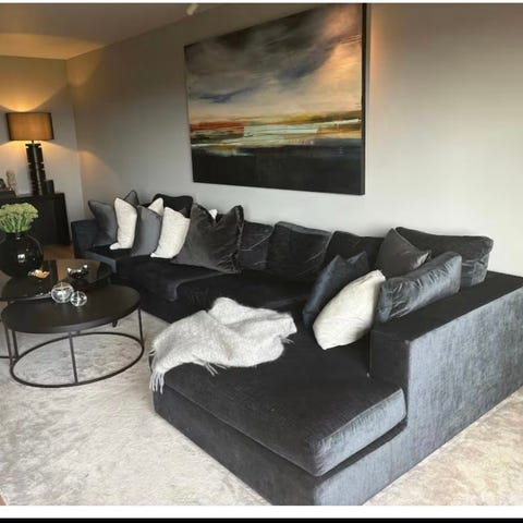 Vi har sofaen utstilt i Chenille Mole i vårt showroom