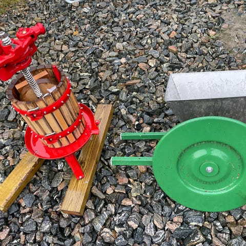 Profesjonell hydraulisk frukt- og bærpresse med stor kapasitet. Trenger 16 amp.
