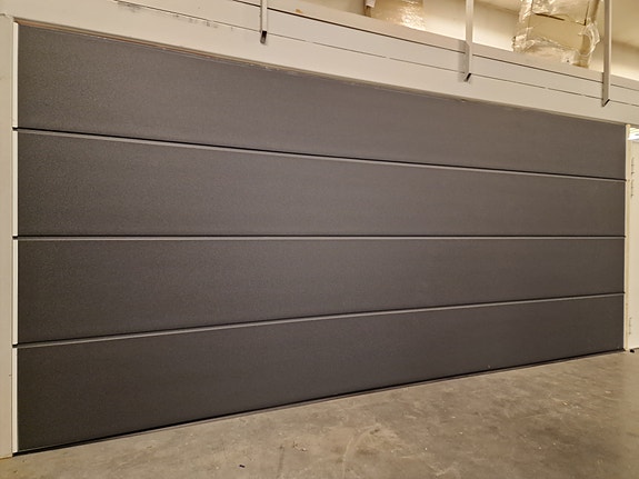 Industriportene leveres i størrelser opp til 800x600cm med forskjellige typer løfte- og skinnesystem. Leveres i 12 forskjellige standardfarger.