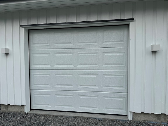 Kan leveres med automatisk portåpner, motor, fjernkontroll, fotocelle, m.m.