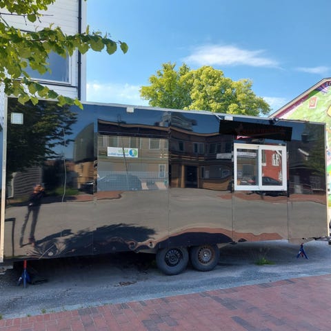 Denne salgsvognen leveres med topp kvalitet, sandwichisolerte vegger og tak for optimal varmeisolering. Inkluderer hvit salgsdisk og hyller, to separate salgsluker, veskehylle, dobbel vask, 5l vannvarmer, og 230V lysarmatur. Materialer av høy kvalitet med rengjøringsvennlige glasfibersider og linoleumsbelagt finerbunn.
