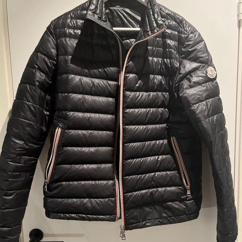 Moncler Daniel Jakke i sort med tricolor glidelåser. Jakken er i strl 3 og tilsvarer en M. Egenskaper verdt og nevne er høy krage, 2-veis glidelås lukkemekanisme foran, 2 glidelås lommer på sidene, trykknapp mansjetter og logo på ermet. Tilstanden er utmerket, med unntak av en liten reperasjon gjort av Moncler på ermet (Vises på bilde nr 4). Så og si usynlig med mindre du vet det er der.