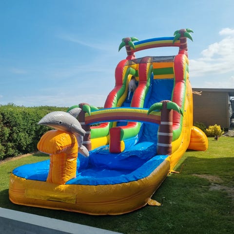 Gi barna en tropisk opplevelse med vårt Multi Slide Caribbean oppblåsbare lekesett! Dette fargerike og morsomme hoppeslottet med flere sklier vil være høydepunktet på ethvert arrangement.