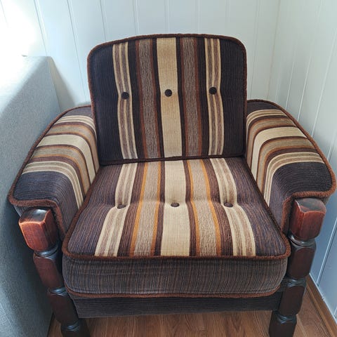 # skinnstol skinn lenestoler sofa retro 60 70 80 tallet kanvas stue.