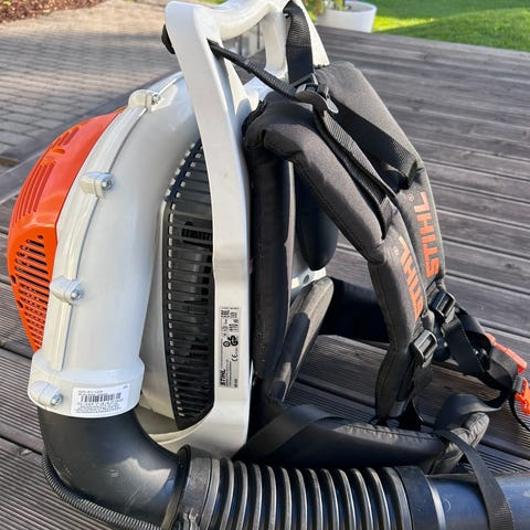 Meget kraftig løvblåser til å ha på ryggen. Brede og behagelige skulderreimer gjør dette til en maskin man kan bruke over lengre tid.