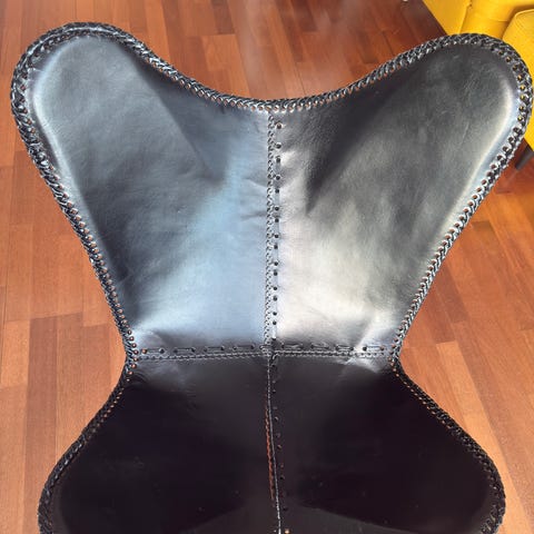 En helt spesiell stol laget av ekte skinn for komfortabel sittestilling. Den er I meget bra tilstand.