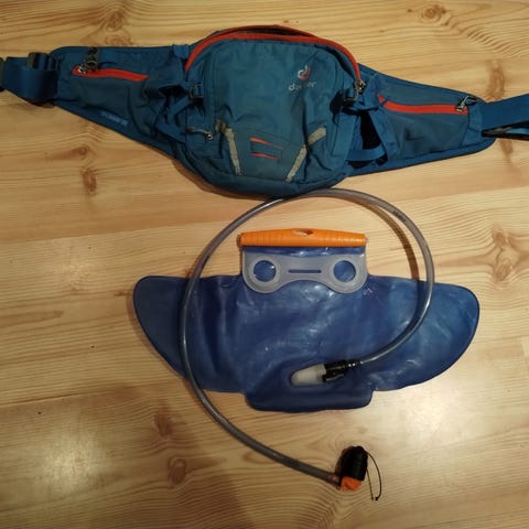 Et stort, flatt rom med åpen ende på baksiden av hoftevesken gjør at du kan oppbevare midjestroppen der om nødvendig og kan brukes som en stor belteløkke hvis du vil feste Kukkaro på hoftebeltet til en ryggsekk .