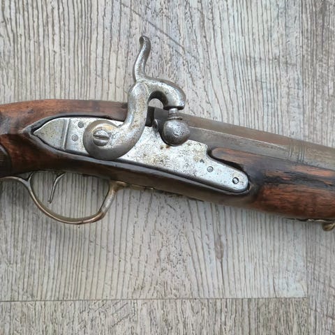 Liten perkusjon/svartkrutt munnladerpistol. Disse er registreringspliktige og må søkes om, men er etter den nye forskriften unntatt behovsprøving. Det vil si at det må sendes inn søknad til politiet, men det er krav om aktivitet. Kaliber .44