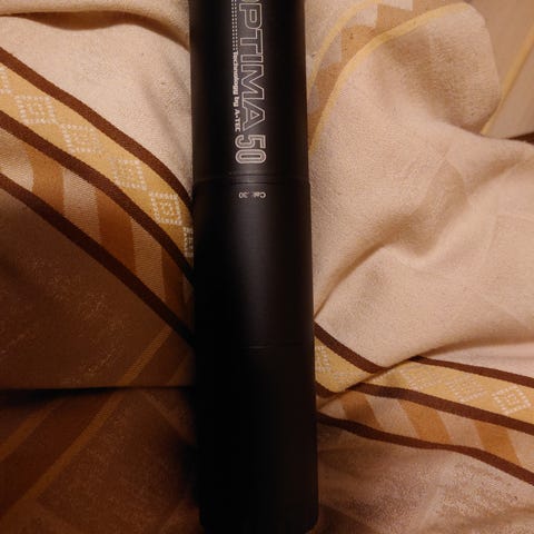 Bygger 119mm forran løpet. 49,5mm diameter. 362 gram. Demper 308Win 29db(c). Godkjent for magnum kalibre. Mirage ring med korn og lyktefeste som tilbehør.