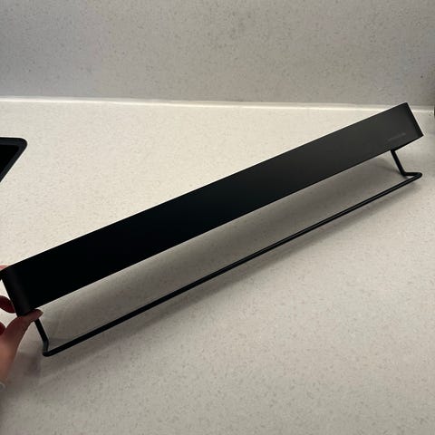 Skittentøyskurven er ikke bare praktisk, men også stilig med lærhåndtak og slående geometrisk mønster.