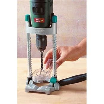Dette stativet passer for alle 43 mm boremaskiner. Takket være kontakten for støvutvinning, gir det en støvfri og presis boring i alle posisjoner. Borestativet har vippbare, doble styrestenger med en skala for presis boring +/- 45 . Det er utstyrt med et ekstra håndtak for presis plassering og mot sliping ved boring. Det integrerte V-sporet er designet for sikker festing av arbeidsstykker.