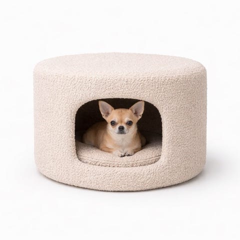 * Avrundet med høye vegger og nedsunket soveplass for dyrets komfort / sikkerhet