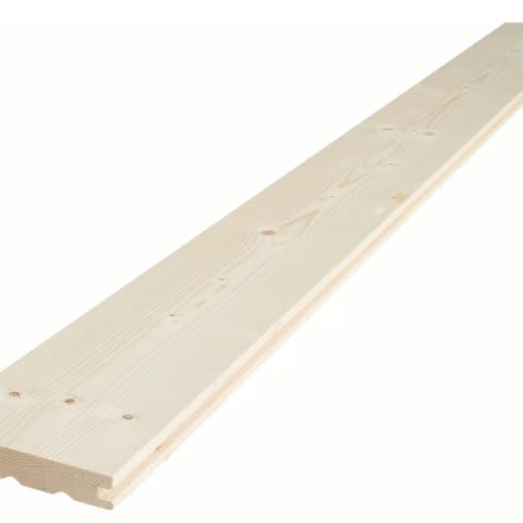 Utvendig dobbelfalset kledning (d-fals) gran 19x148 ubehandlet.