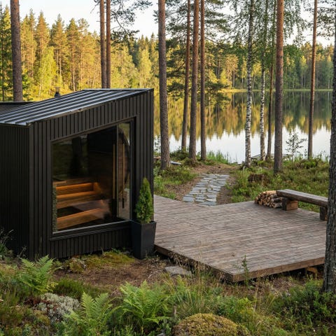 Badstuen kan utstyres med en vedovn eller elektrisk ovn, og kunden kan velge farge på malingen og taket etter ønske.