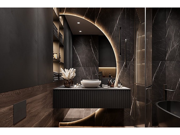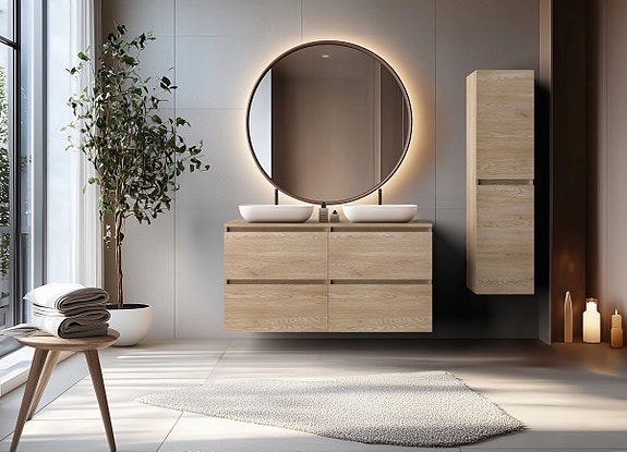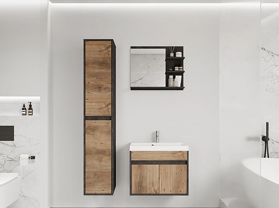 Kolleksjonen utmerker seg ved sin unike okopi-valnøttfarge, som gir interiøret en varm og koselig karakter, samtidig som modernitet og eleganse opprettholdes. Fronter laget av høykvalitets laminert plate garanterer holdbarhet og motstand mot skade. Den lydløse lukkingen av fronter og skuffer sikrer stor brukskomfort, eliminerer støy og knitring ved lukking og åpning av skap.