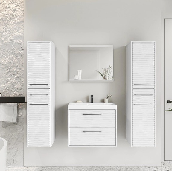 Kjøkkenmøblene inkluderer et praktisk skap under vasken, et skap med skuffer, som vil være en ideell løsning for oppbevaring av bestikk og diverse kjøkkentilbehør, og to skap med hyller som gir plass til større servise og redskaper.