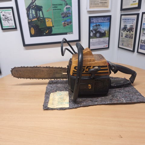 Kjedesagen veier 7 kg. inkl. sverd og kjede og er med antivibrasjon, så den er lett å jobbe med lenge av gangen.