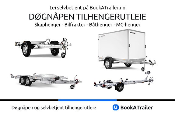 Bestill og hent tilhengere igjennom vår selvbetjente løsning, døgnet rundt. Priser, tekniske data og tilgjengelighet finner du også på nettsiden.