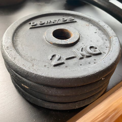 Jeg selger mange forskjellige vektskiver i 25mm størrelse. Alle vektene er i veldig god stand.