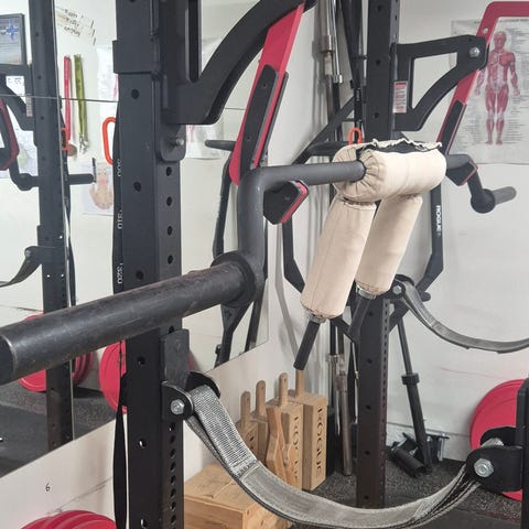 En safety squat bar er et fint alternativ til vanlig knebøy med rett stang da denne vil legge mindre krav til mobilitet hos brukeren. Den vil fordele vekten litt mer fremover slik at en ikke så lett tipper bakover. Både ankler og skuldre vil dermed stilles under mer nøytrale forhold og selve knebøy øvelsen blir en blanding av frontbøy og vanlig knebøy. For mange vil knebøy med en slik stang føles tryggere og mer riktig kontra med en vanlig rett stang. Nakke og skulderputene på vår safety squat bar er meget solide og slitesterke. Det medfølger et par jaw locks. Denne stangen brukes med olympiske vektskiver (50mm) som kjøpes separat.