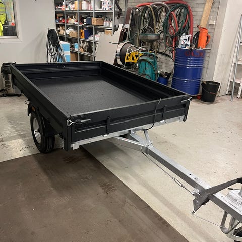 Romslig kapellhenger som er lett å trekke! Kassemål 495 x 190 cm. Innvendig høyde 175 cm.