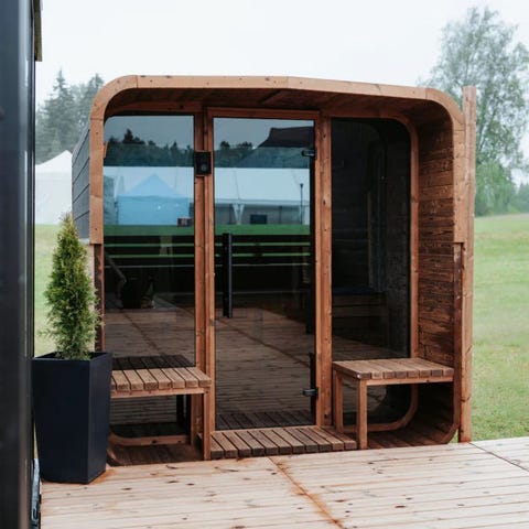 Flott sauna i kompakt størrelse til en god pris. Passer perfekt på hytta, hjemme eller hvor du ønsker muligheten til en avslappende tid i sauna. Her kan du også få en avkjølingstank med i samme utførelse som saunaen. Her kan du velge mellom flere forskjellige vedovner og elektriske ovner i tillegg til flere typer farger. Leveransen inkluderer også to sittebenker i thermowood, et stort vindu og belysning.