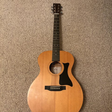 Kroppen er af mahogny med et massivt sitka-gran, og halsen er av mahogni med et gribebrett av Micartr. Denlitt mindre størrelsen gjør den perfekt til fingerspill og lettere strumming, da den har en varm og rund mellom tone med masser av resonans Dens kvalitet og pris tatt i betraktning får gitaristen et allsidig og meget spillbart instrument, der rummer glede og inspiration.