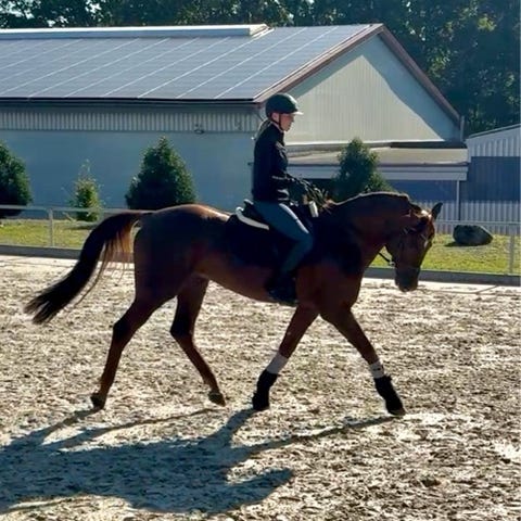 Du får prøve hesten under alle forhold om du ønsker det. Vi har 2 ridehus, stor fiberbunn ridebane med ferdig oppsatt hinderbane.