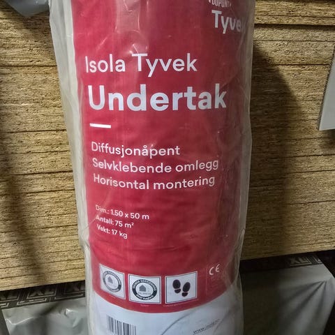 Mål på Tyvek® Supro + tape. 1,5 m x 50 m = 75 m²