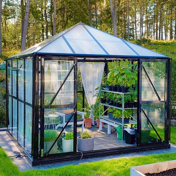Drivhus Modell Holmestrand 436x436x311 cm – Sort Aluminium