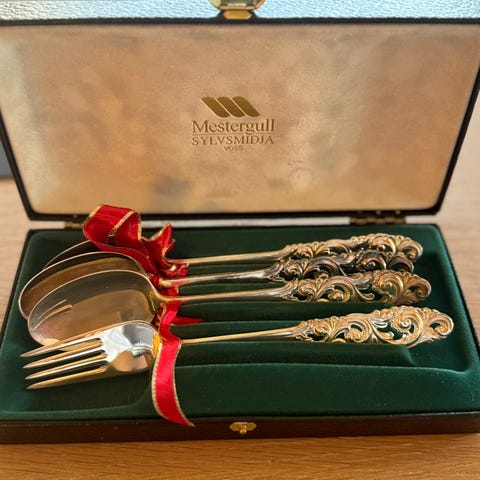 Sølvbestikk og sølvtøy i diverse mønster i 830s