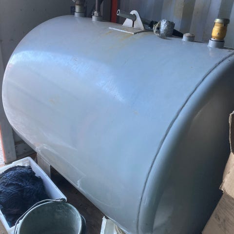 Tanken har stått innendørs (eget pumpehus) inntil nylig da den ble erstattet.