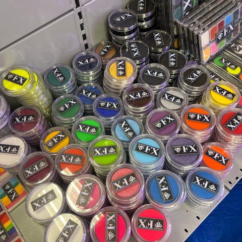 er en fargerik kombinasjon av flere nyanser i én kake, designet for å skape imponerende ansikts- og kroppsmalingseffekter.