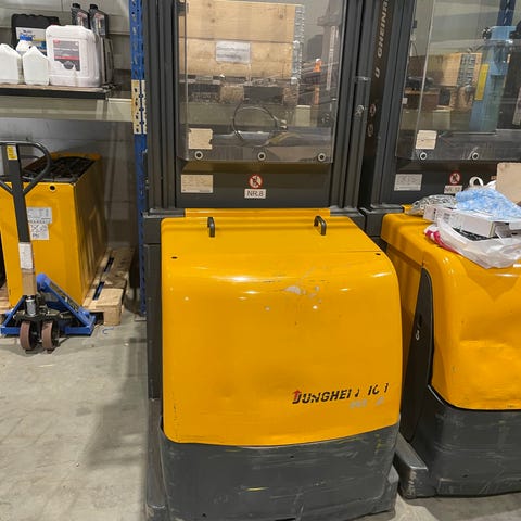 Plukktruck med 2800mm plattformhøyde. Godkjent med sakkyndig kontroll utført. Fungerer fint, men mangler gafler, dette gjør den mer smidig.