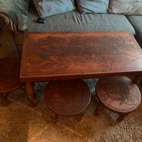 Skinn sett bord selges 1900,- ( veil 6075,-)