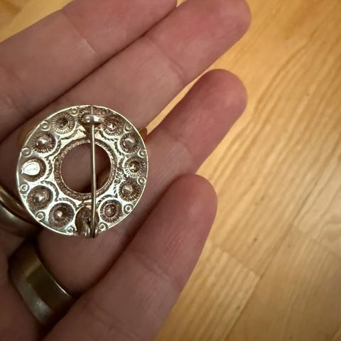 15. Hollands halsknapp på nål, ustemplet men i sølv, L 4 cm, H 2 cm / Solgt