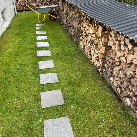 Låsbar hagebod med vedstativ