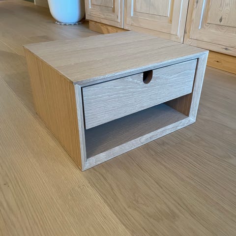 Nye vegghengte nattbord i eik. Farge: valnøtt