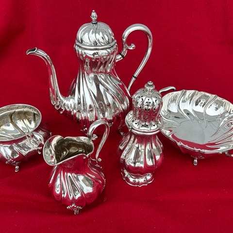 Sølv kaffesett i Opphøyet Rose i 830s 3 deler