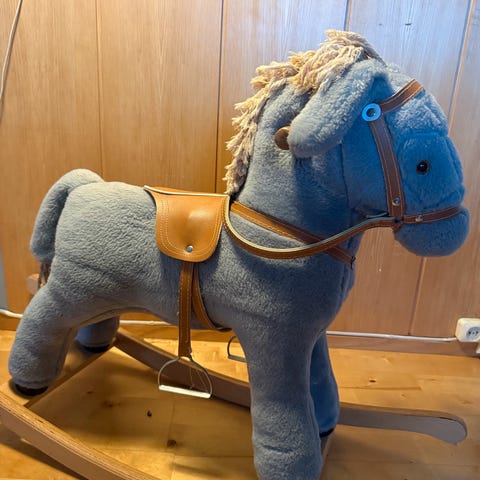 Denne vennlige hesten med detaljerte funksjoner er laget av høykvalitets plysjstoff, noe som gjør hesten veldig myk og koselig. Hesten kan bære opptil 100 kg og lydfunksjonen gjør den enda mer livaktig og morsom. Vår plysjhest vil være en god venn for barn!