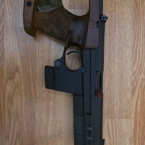 Sikkerhetsflagg laget spesielt til Steyr LP50 Luftpistol – settes inn i magasinåpningen og markerer at våpenet er tomt.
