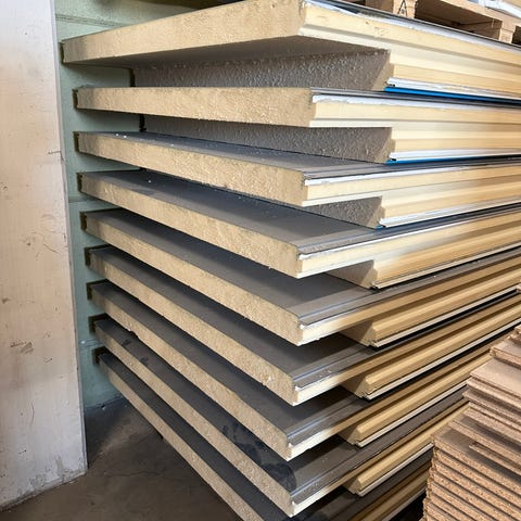 Sandwich panel til tak og vegger. Kan bruke som isolasjon til garasje, lager, låve, bygg, deling av rom eller til kjøle og fryserom.