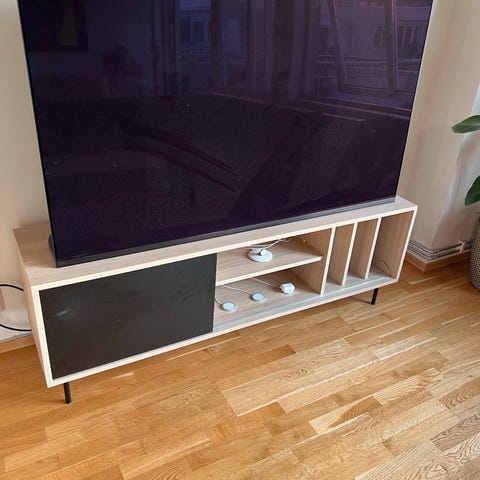 Denne TV-benken har oppbevaringsplass