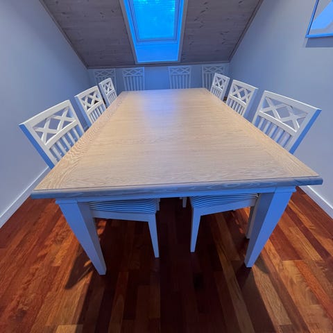 Med denne flotte eikeplaten kan du enkelt og greit fornye bordet ditt, som et tips kan man behandle den med Osmo pigmentert hardvoksolje eller dekorvoks slik at man kan få akkurat den fargenyansen man ønsker på bordplaten.