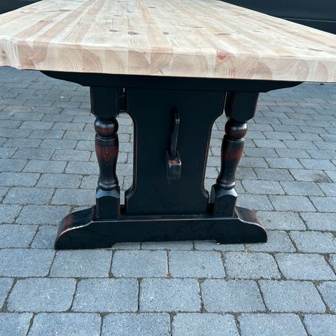 Landingen langbord har et kraftfullt uttrykk med sin rustikke plate av "heltre plank " og solide massive bordben. Landingen langbord leveres med 65 - 75 mm tykk rustikk plate.