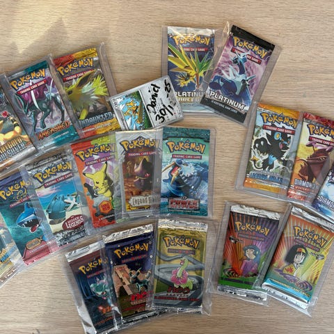 Diverse vintage booster packs, disse ble kjøpt opp fra en nedlagt Ringo butikk på 2000 tallet, uveid!