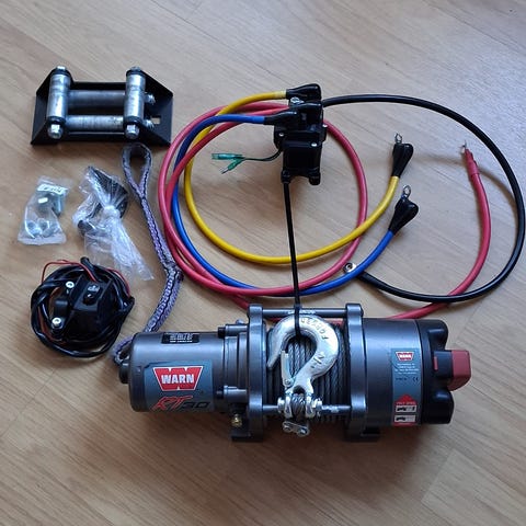 Leveres med trådløs fjernkontroll, vinsjrulle med stor diameter på nedre rulle og ledningsnett / kontakter for kjøretøyets elektriske system (12V DC).