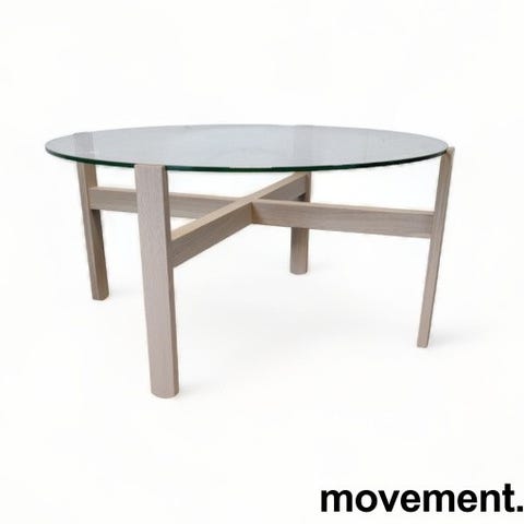 Loungebord / sofabord i hvitlakkert eikefiner, Ø=100cm, høyde 36cm, pent brukt
